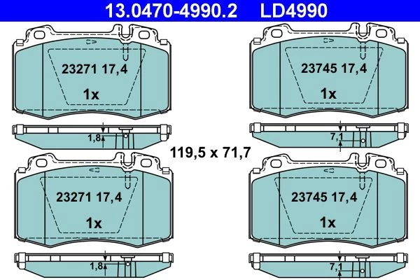 Der Bremsbeläge mit der Artikelnummer 13.0470-4990.2 von ATE ist ein hochwertiges Ersatzteil für eine zuverlässige und sichere Fahrzeugfunktion. Das Produkt Bremsbelagsatz, Scheibenbremse (13.0470-4990.2) wurde nach strengen Qualitätsstandards gefertigt und bietet eine präzise Passform für kompatible Fahrzeuge.