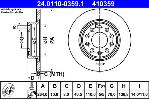 The product Bremsscheibe (24.0110-0359.1) from ATE with article number 24.0110-0359.1 belongs to the category brake discs and represents precisely manufactured quality and reliable braking performance. The brake disc was produced according to strict manufacturer specifications and offers an optimal fit for numerous vehicle models.