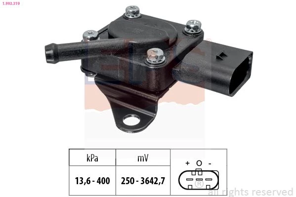 Das Produkt Sensor, Abgasdruck (1.993.319) von EPS mit der Produktnummer 1.993.319 gehört zur Kategorie Exhaust Pressure Sensor und wurde für eine zuverlässige Funktion sowie eine hohe Passgenauigkeit in Ihrem Fahrzeug entwickelt.